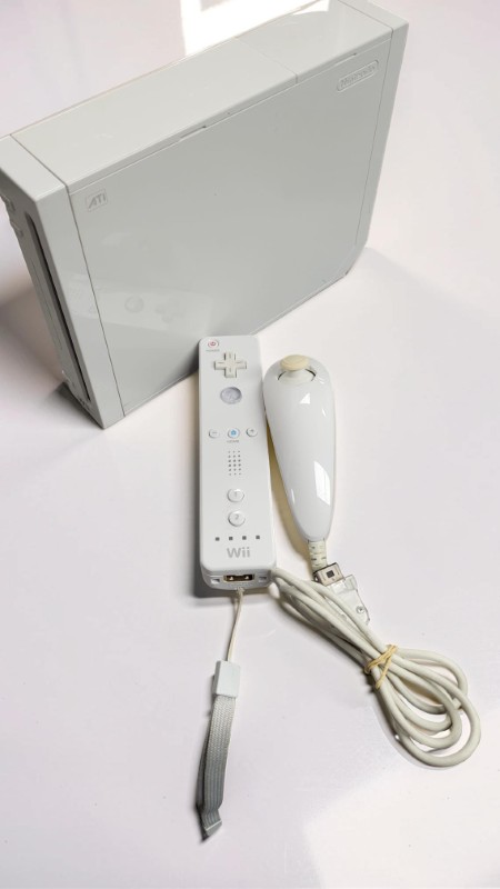 Enjoy classic gaming with this Nintendo Wii console — a fun and family-friendly system known for its motion-controlled gameplay and wide range of games.