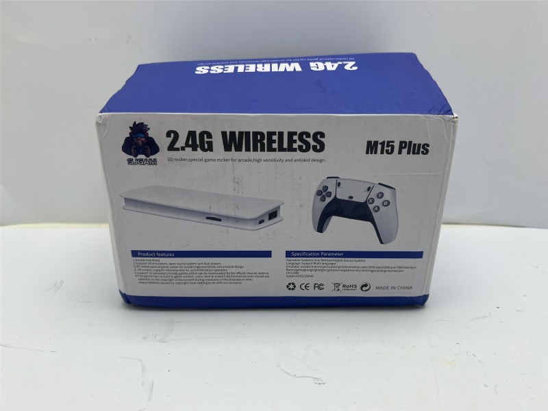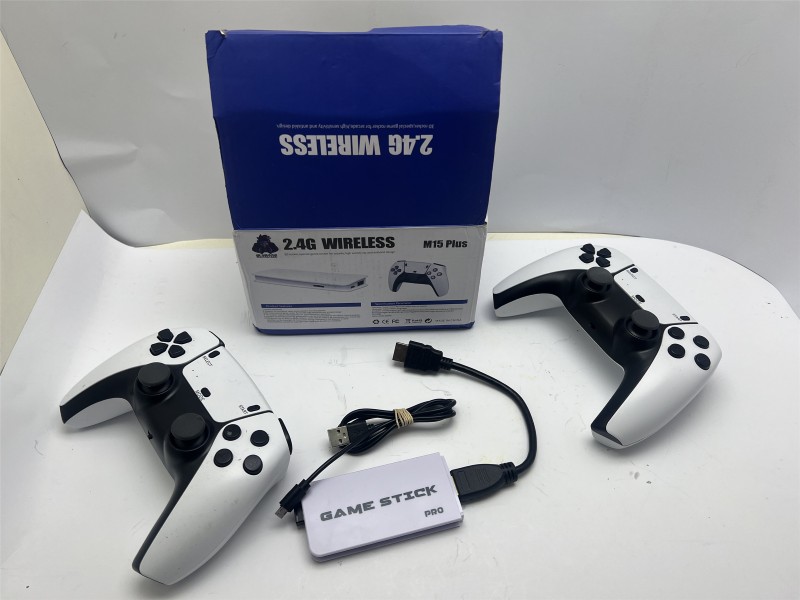 The M15 Plus is a 4K HDMI plug-and-play retro game stick featuring 2.4GHz wireless controllers. +