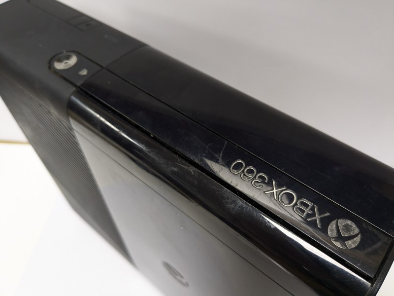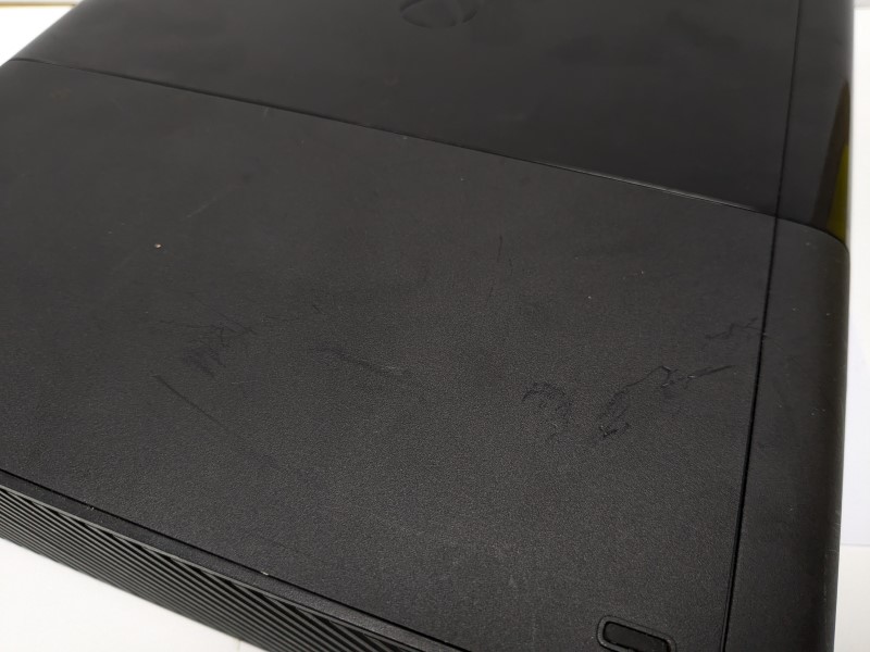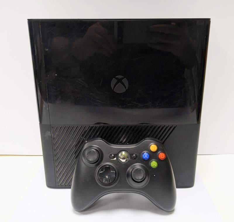 Microsoft - Xbox 360 E - Comes unboxed with 1 pad and cables. The console comes in a Used condition with scratches to all sides of the item from wear and tear over time, The controller also comes in a Good condition with light signs of wear to the item. All marks and scratches to the item are purely cosmetic and have no effect on the performance of the item. The Xbox 360 E has been fully tested and wiped coming with a full 12 month warranty.