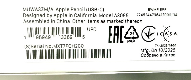 Model Number: Apple Pencil (A3085) Usb-C