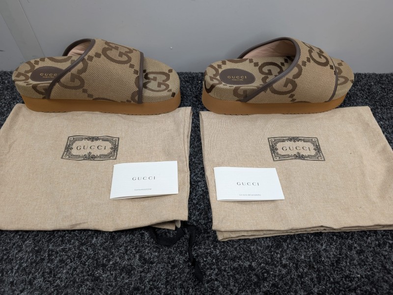 Brand: Gucci Jumbo Gg Monogram Platform Slides