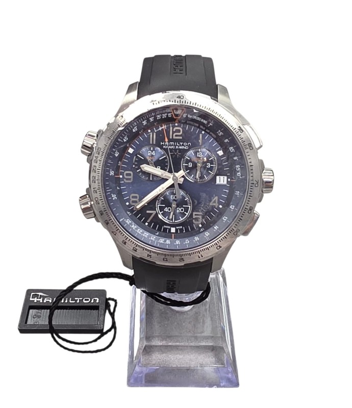 Hamilton Men's Khaki X-Wind Chrono Quartz Blue Dial Black Rubber Strap Watch