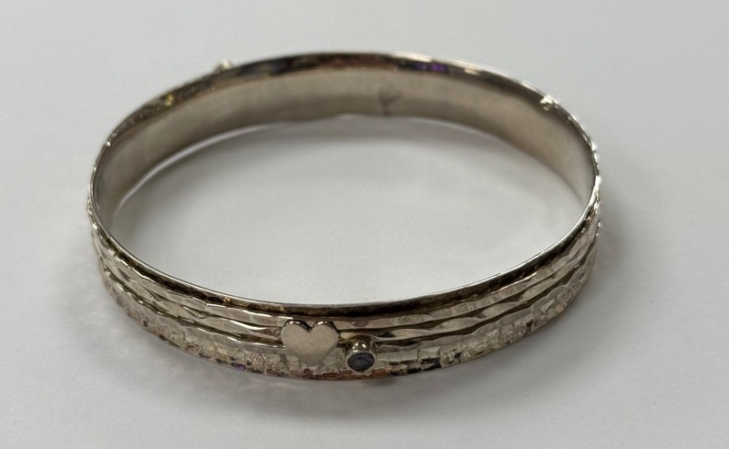 Silver Bangle with Heart and Stone