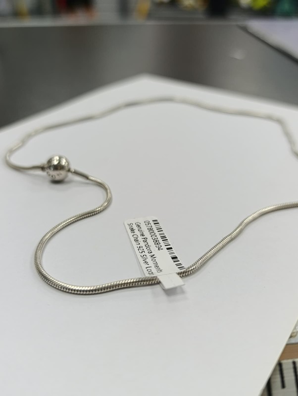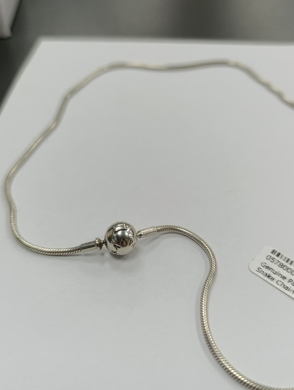 Make / Model: Genuine Pandora Moments Snake Chain 925 Silver Logo Ball Clasp Necklace 18"