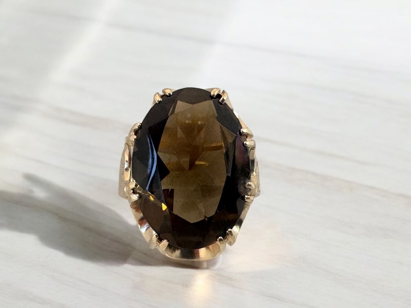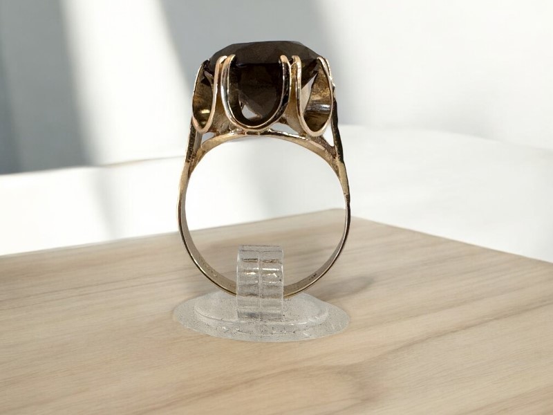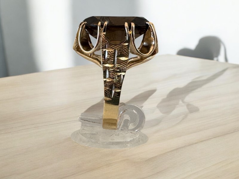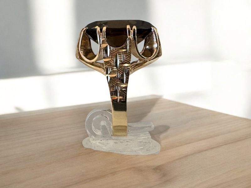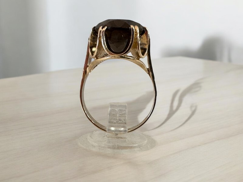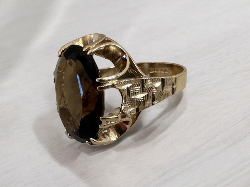 Make / Model: Oval Brown Stone Open Setting 9Ct Yellow Gold Ring - 6.23 Grams