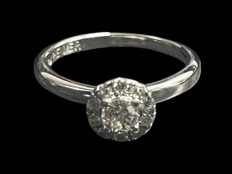 Timeless and elegant, this stunning ring is crafted in luxurious 18ct white gold. At its centre sits a sparkling cluster of natural diamonds, designed to catch the light beautifully and create a brilliant display of fire and radiance.