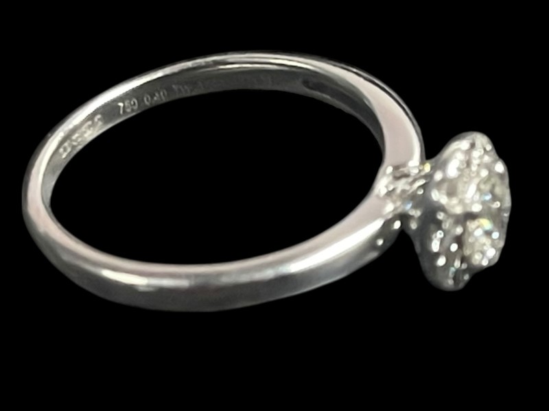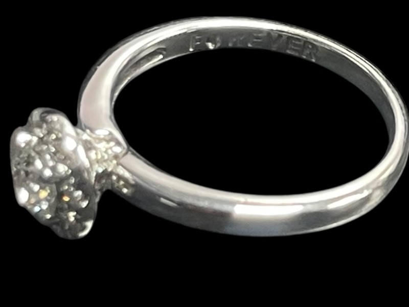 The band is sleek and polished, offering a sophisticated balance to the dazzling diamond setting. Perfect as an engagement ring, anniversary gift, or a treasured addition to your jewellery collection, this piece combines classic style with enduring beauty.