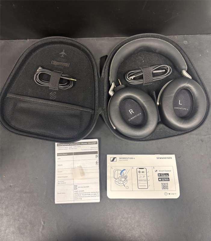 These Sennheiser Momentum 4 wireless Bluetooth headphones are in great used condition. comes box with carry case and charging cable. headphones have been tested and are in good working condition. Up-to 60 hours battery.