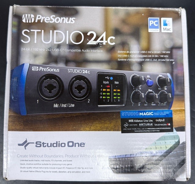 Presonus, Studio 24C. This audio interface is in good used condition in the box with the power cable included. Also comes with 12 months warranty included.