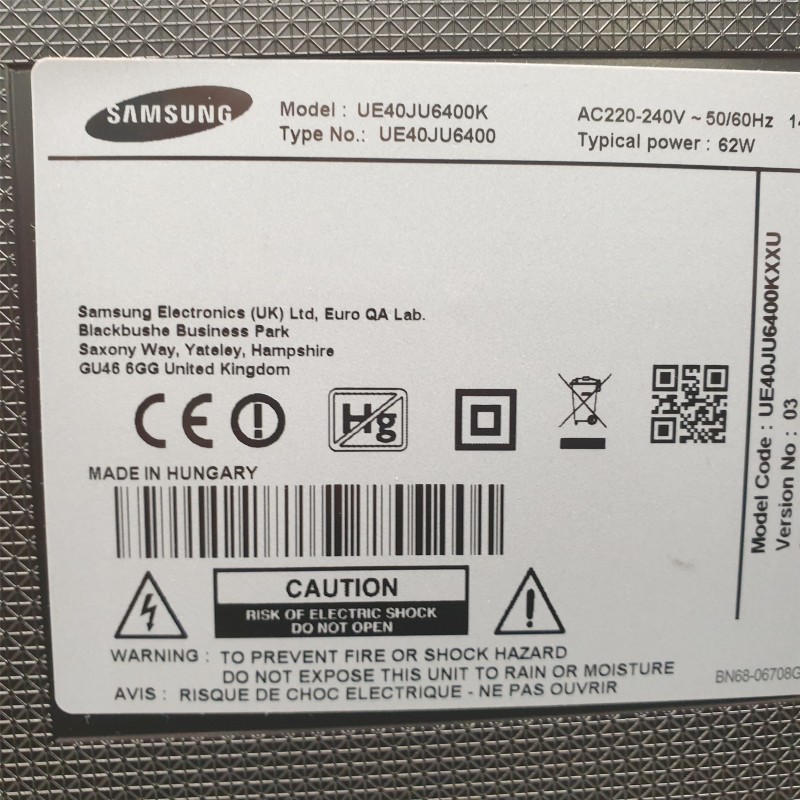Model Name: Ue40ju6400k 40" 4K Led Backlit LCD Smart TV