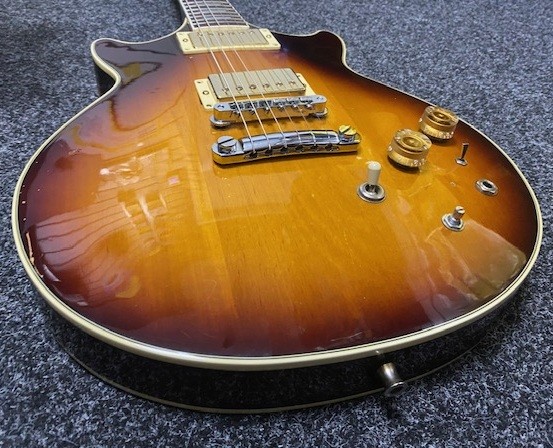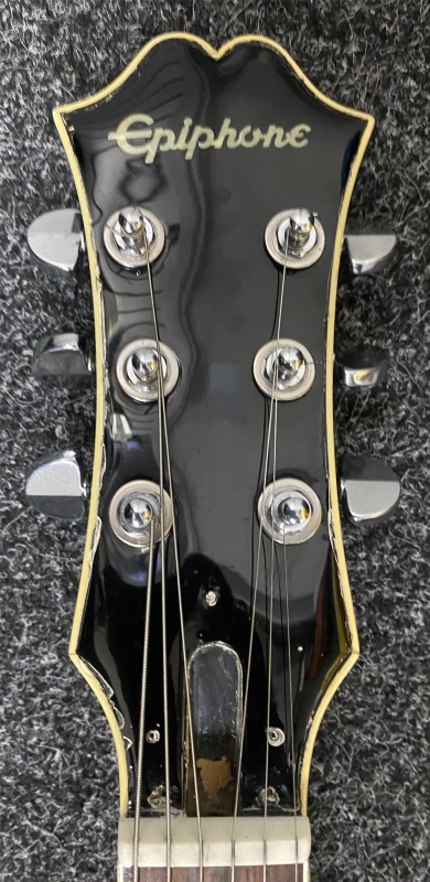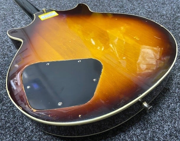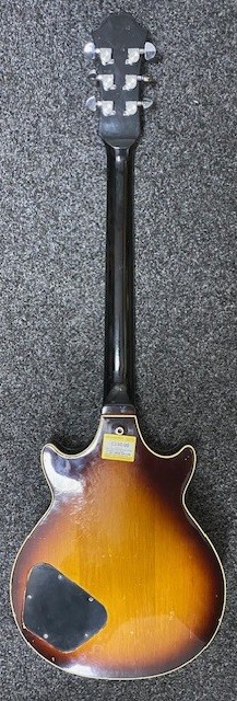 Item is used and around 45 years old. It is a relic and shows it's age, but still plays well and the hardware is still functioning as expected. It has a fair number of dings and scratches as seen in the photos. the top has a number of scrapes and dents. it's missing one of the dials, and the ones that are there are replacements. the sides of the guitar have further signs of scrapes and damage, but nothing worse than a few chips in the paint. The back has a fair amount of dents and scratches, and notably paint peeling around the back plate. The neck is smooth and surprisingly clear of much damage, meaning it still plays very nicely. The headstock has a significant number of chips in the paintwork around the edge, as seen in the photo. The back however is mostly pretty clear.