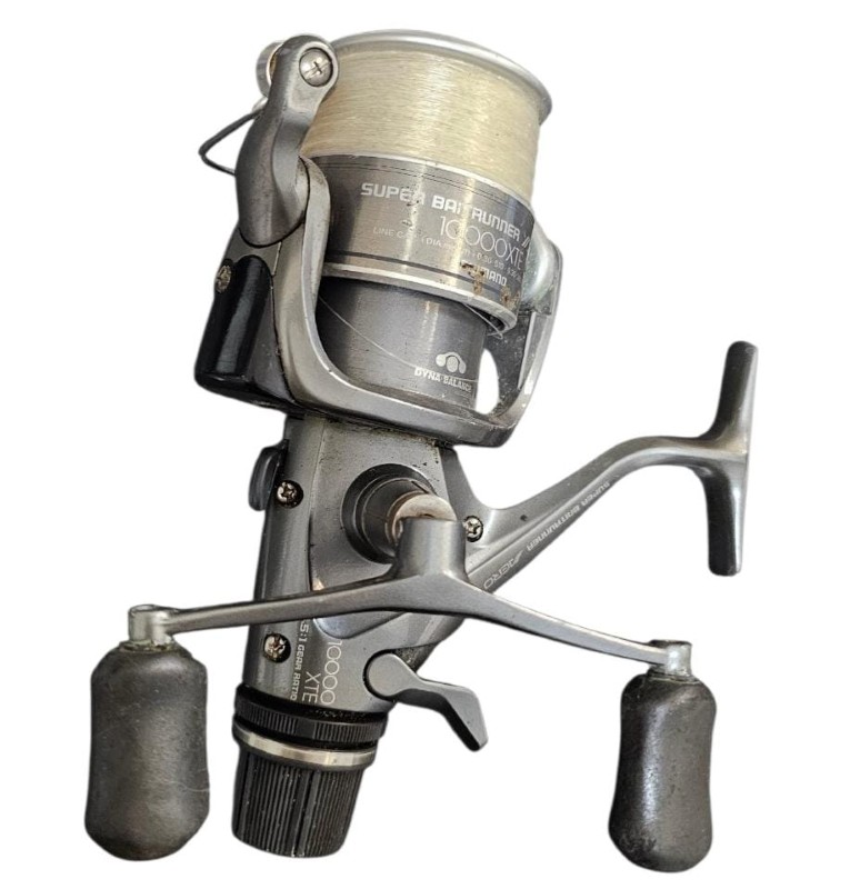 The Shimano Super Baitrunner 10000 XTE is a legendary carp reel, renowned for its durability and the iconic "Baitrunner" free-spool system. This 10000 size is perfect for targeting large carp, providing the line capacity and cranking power needed for long-range casting and tough fights.