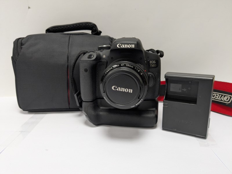 Canon DSLR EOS 750D Camera + EF 50mm Lens - Comes unboxed with carry case, 2 batteries and a battery charger. The Camera is in a Like new condition with no signs of damage or any marks to the surface or the screen. The Camera has also been fully tested and wiped coming with a full 12 month warranty.