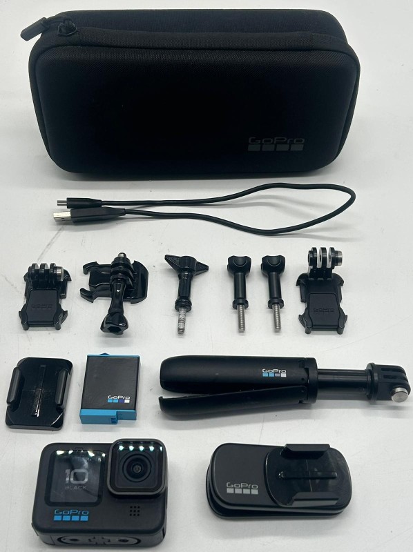 Capture high-quality action footage in any environment with this GoPro Hero 10. This powerful and compact action camera is waterproof, making it ideal for outdoor adventures, travel, and extreme sports. The unit comes with 2 batteries for extended recording time and a protective case for safe transport.