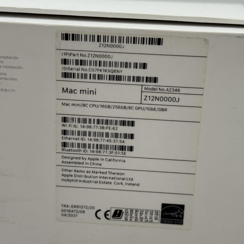 Model Number: Z12n0000jb/A (Macmini9,1)