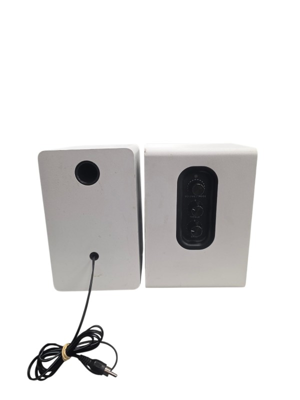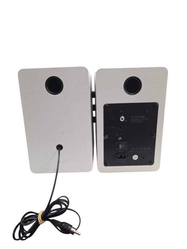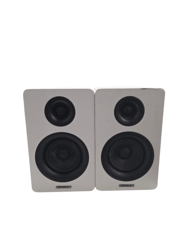 Up for sale is a pair of Sanyun SW-208 speakers. These speakers are unboxed and have signs of wear on the front, as shown in the images, but are otherwise in good working condition. Perfect for home audio, gaming setups, or casual listening.