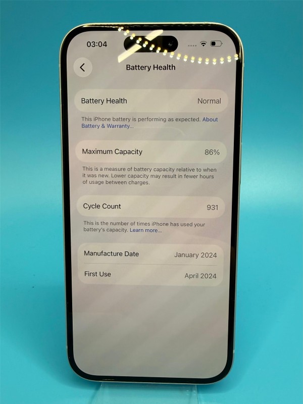 Model Number: White 128GB Unlocked 86% Battery Health