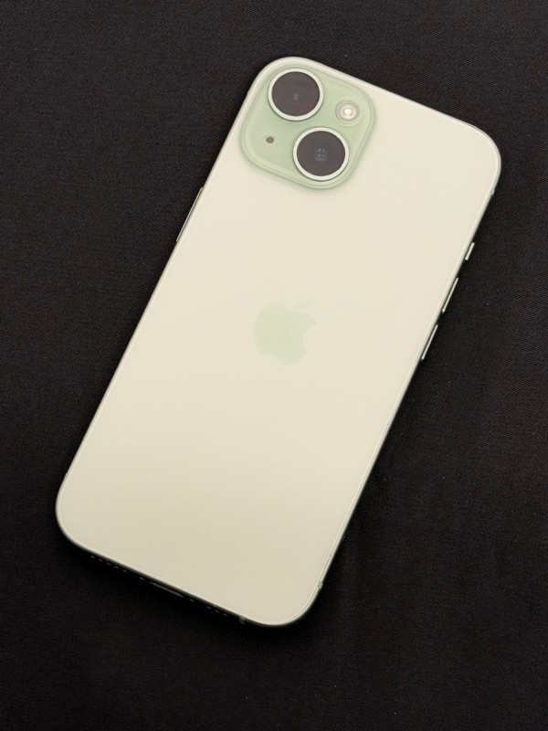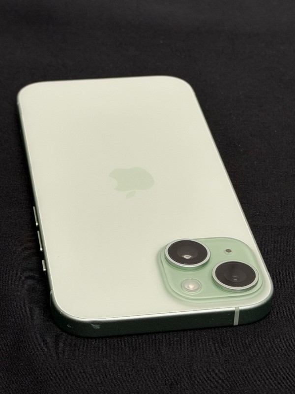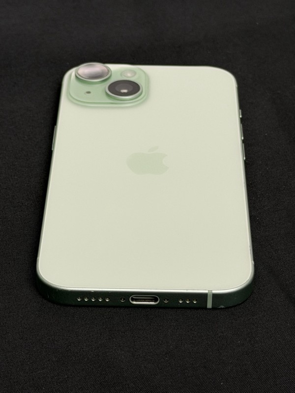 For sale we have this iPhone 15 in green with 128gb storage and has a battery health of 100% also is unlocked to any network comes unboxed and with no charger, there are some scratches on the screen and some cosmetic marks along the edges and corners.