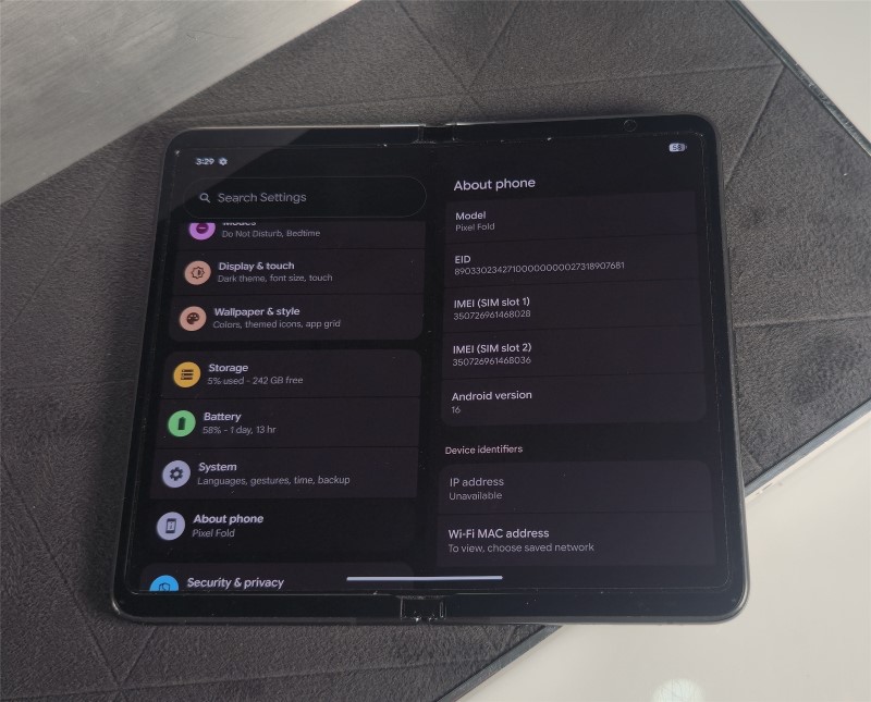 Model: Google Pixel Fold (2023)