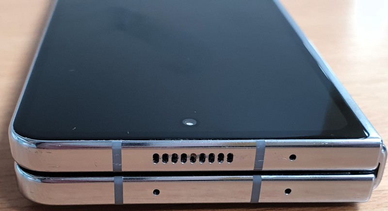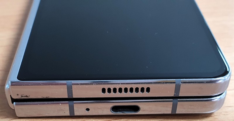 Front screen has scratches on both sides of the screen and has a few small marks on the internal screen