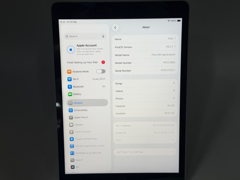 1 x Apple iPad A2602 (9th Generation, 2021) Wi-Fi 64GB Space Grey - Pre-owned