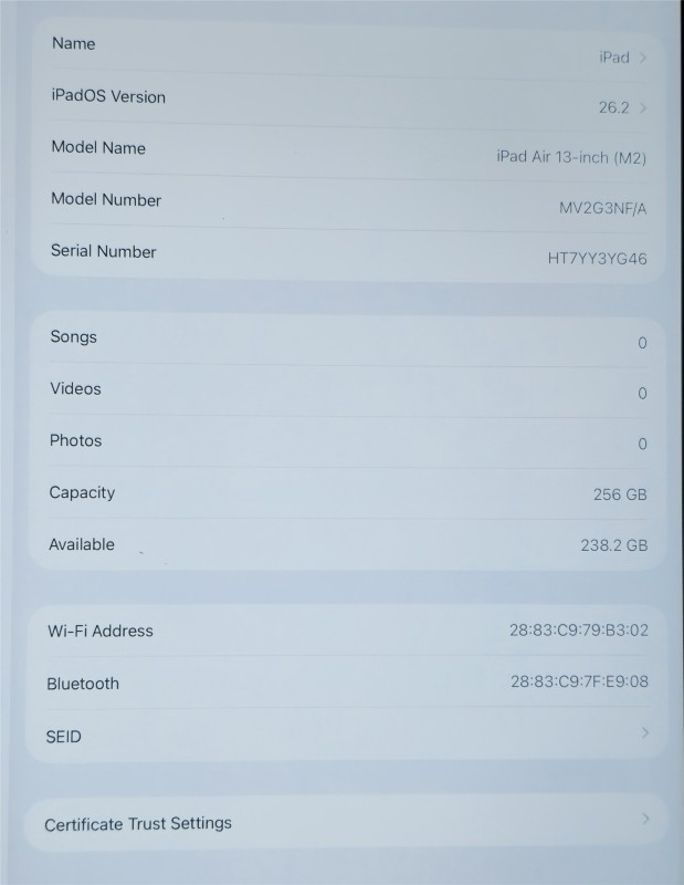 Model Name: iPad Air