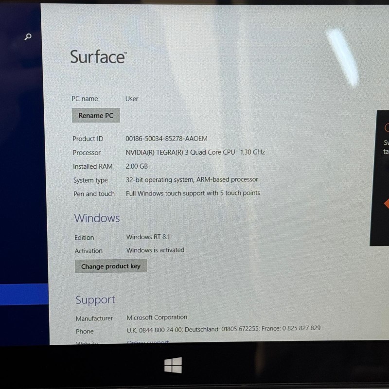 Model Name: Surface 2GB/32GB/Windows 8